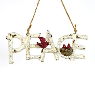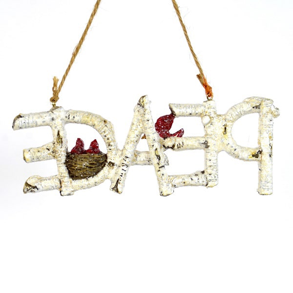 Birch woord PEACE als kerstornament voor in de kerstboom. Warm woord voor in de kerstboom of achter het raam. Tijdloos ornament uit de vintage kerstcollectie van Kurt S. Adler.