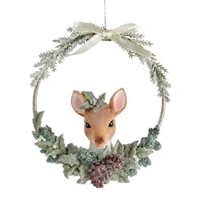 Kerstkrans met hert als kerstornament voor in de kerstboom. Een kerstkrans als ornament uit de vintage kerstcollectie van Kurt S. Adler. Deze vintage kerstornamenten staan bekend om de hoge kwaliteit in materialen. Met oog voor details zoals het lieve kopje van het hert, het groen en de strik. Deze kerstkrans is een aanwinst voor uw kerstbeleving. Kies uw speciale kerstmomenten.